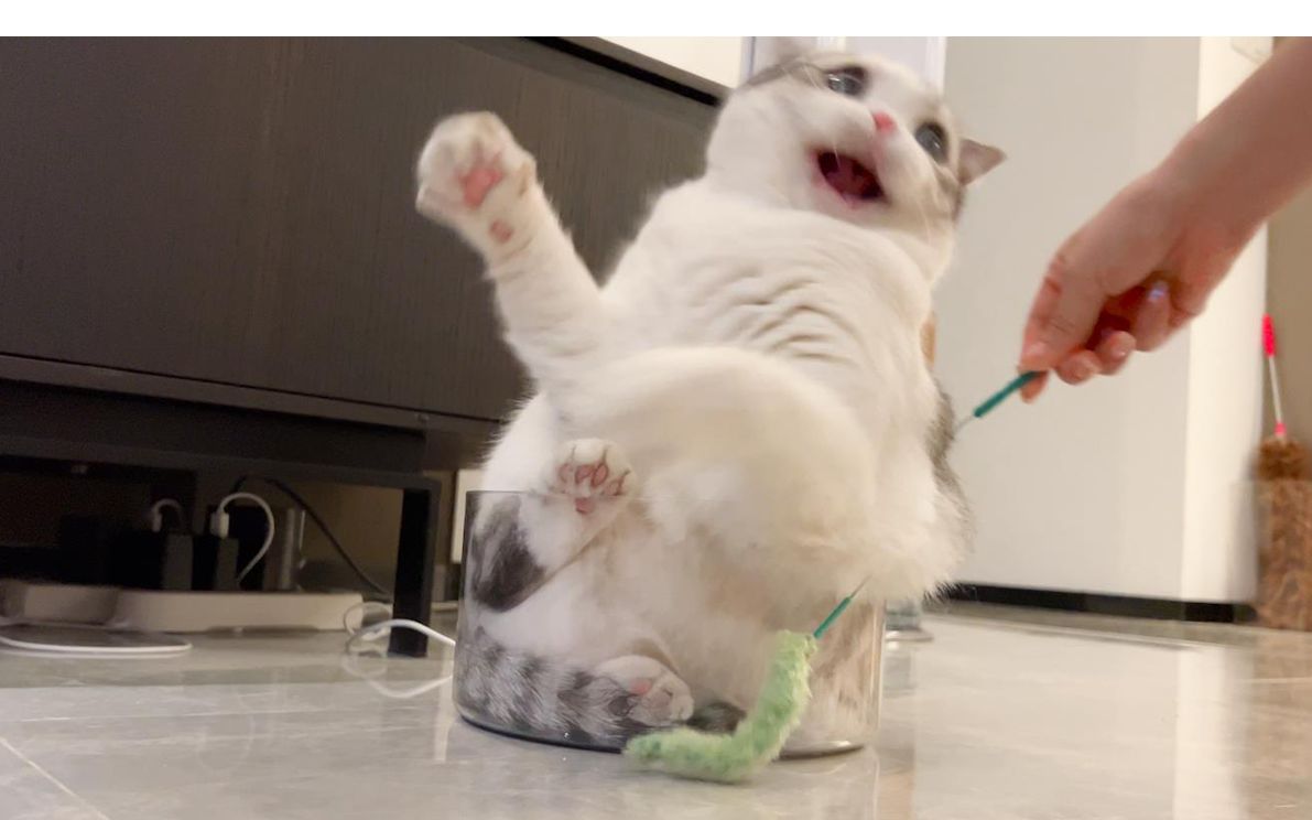The cat was confused after taking the medicine and didn't recognize its own tail
