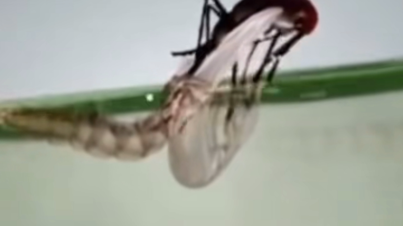 Mosquito exploded after drinking too much blood!