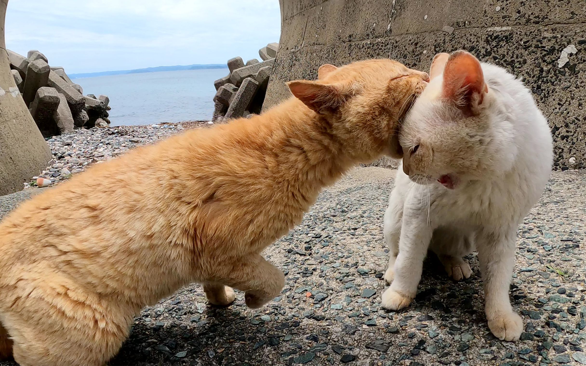 When I go to the beach, a cute kitten welcomes me on the embankment