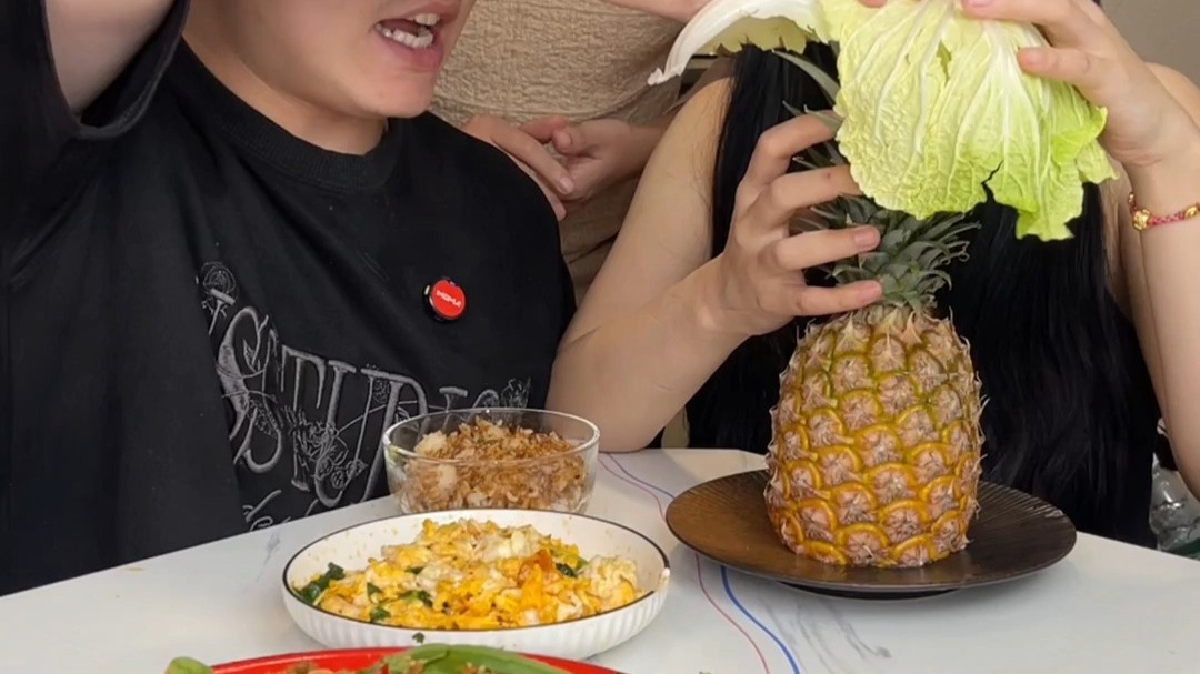 #Spicy and Sour Rice Noodles Do you think Binbin was scared by the "hair"?