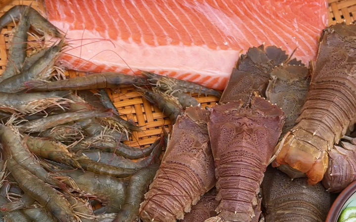 Out in the mountains, we just grabbed some seafood to tide us over—things like spiny lobsters, manti