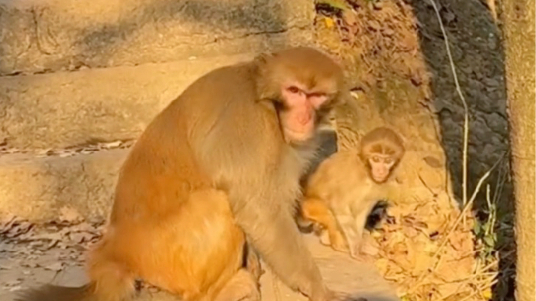 【Animal】A baby monkey sticks to a monkey that isn't its mother
