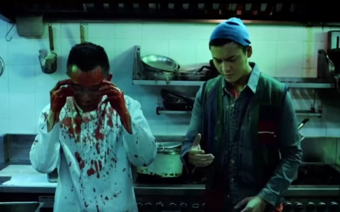 Police Superintendent Hou framed Chow Yun Fat, cut himself and shackled himself to an iron frame, an