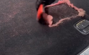 The car runs over a large bag of SpongeBob SquarePants, the scene is spectacular