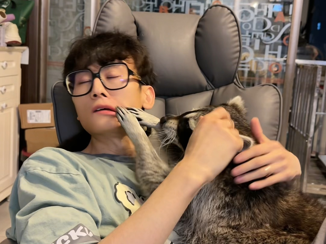 Insist on testing the raccoon's guts #LittleRaccoon #Funny