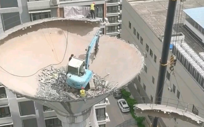 Do you think it’s safe for an excavator to demolish a water tower at such a high altitude?