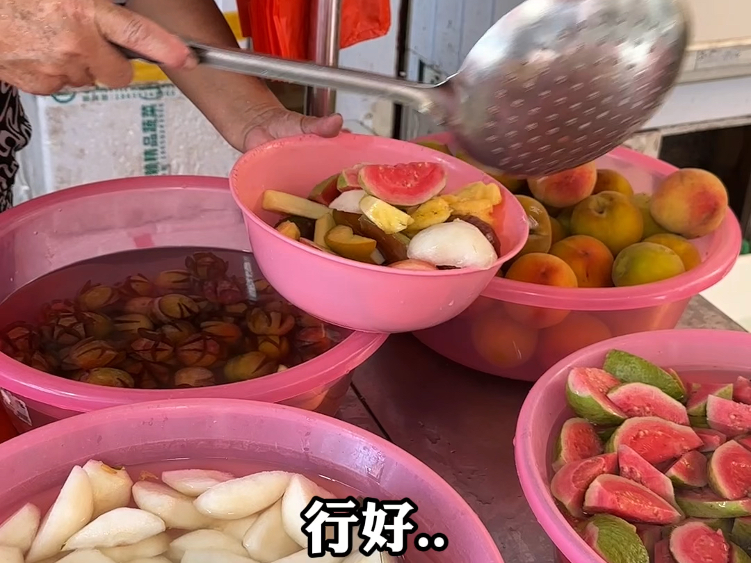 A street version of "Fruit Ninja", his knife skills in peeling and dicing are as smooth as flowing w