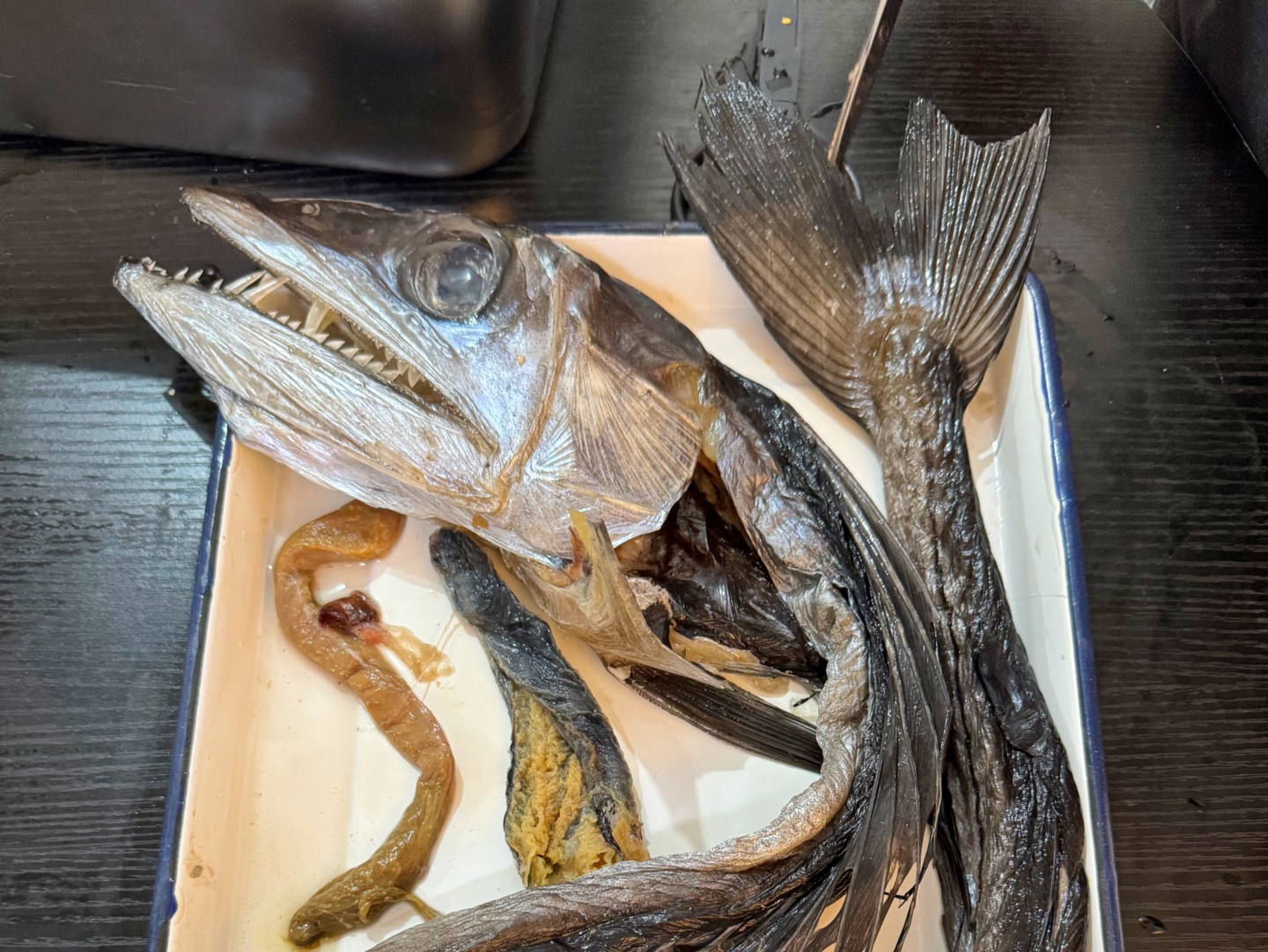 During the big fish dissection experiment, Senior Cat actually came along to taste it.