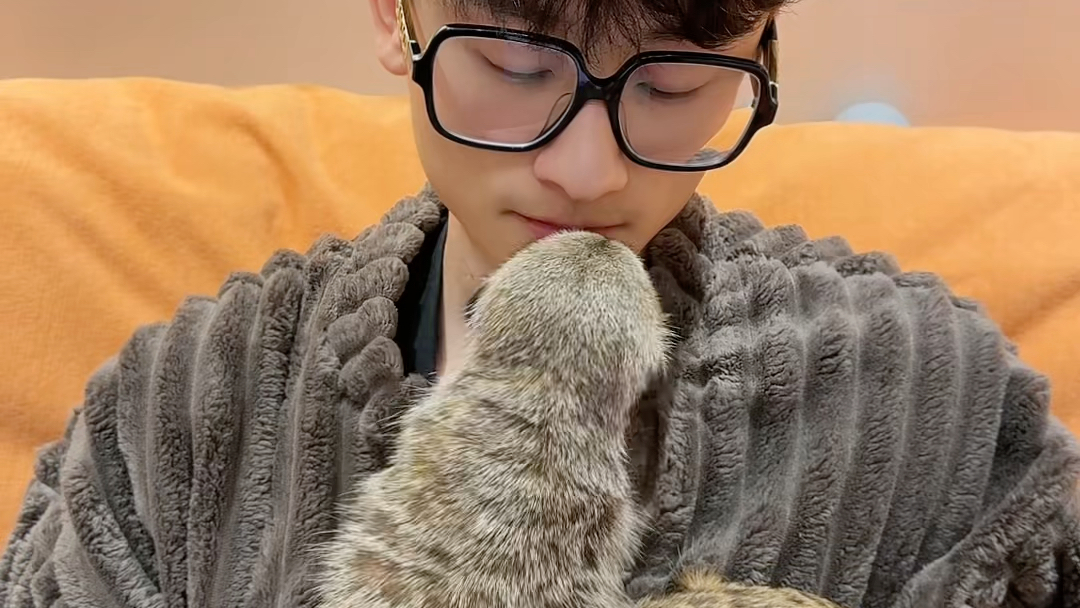 Hahahahaha, Xiaoxiao seems so mad—she just can’t reach me! #Raccoon #CutePetDebutProject