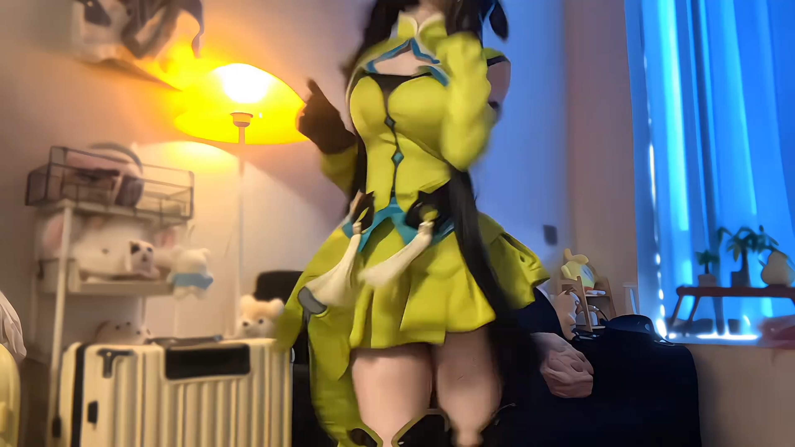 Huai Kongkong cosplay as a female police officer—tight-fitting bodysuit, leather outfit, sexy and se