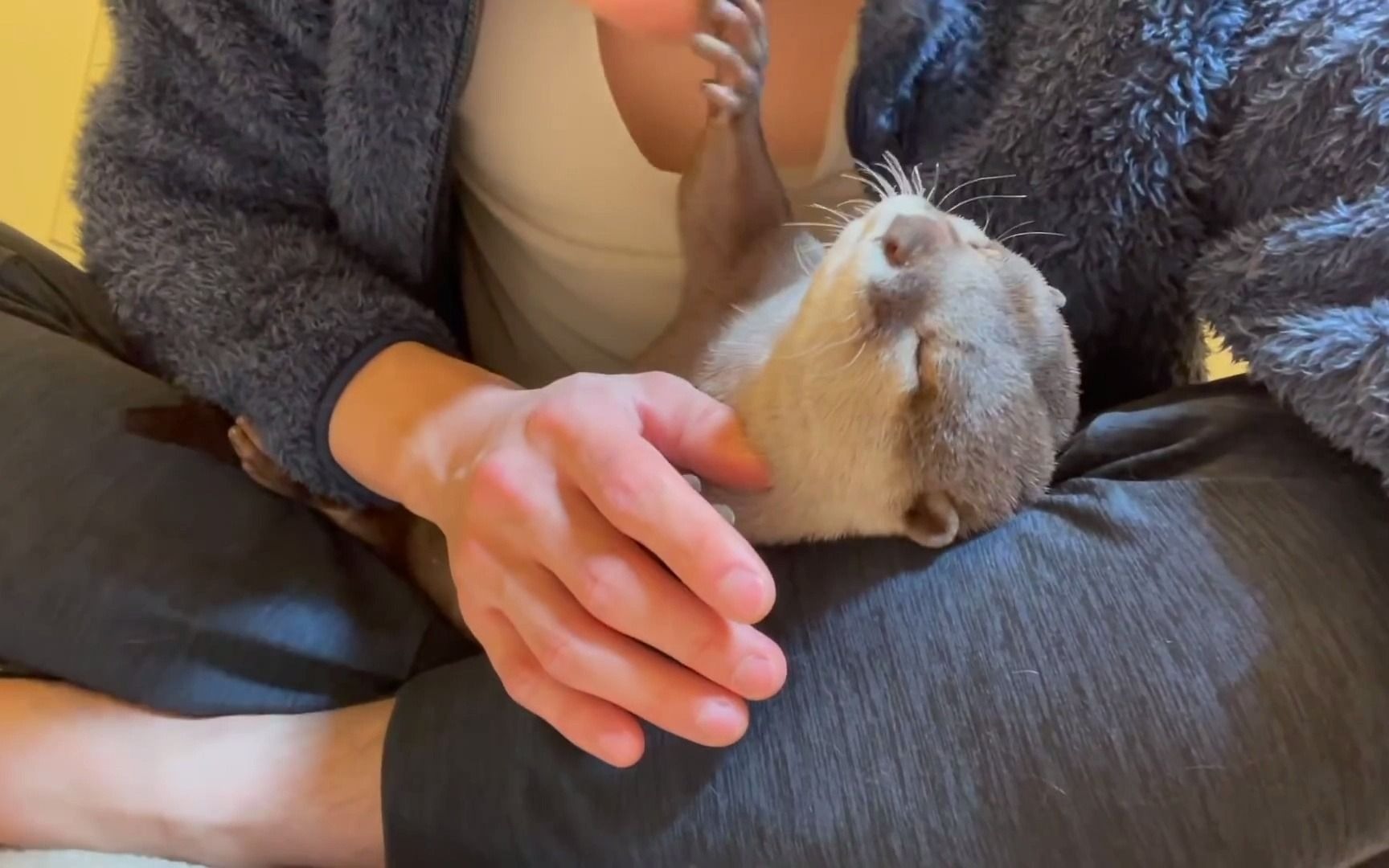 After the owner pretended to be bitten... the otter's reaction was so cute! [Sakura and Mochi]