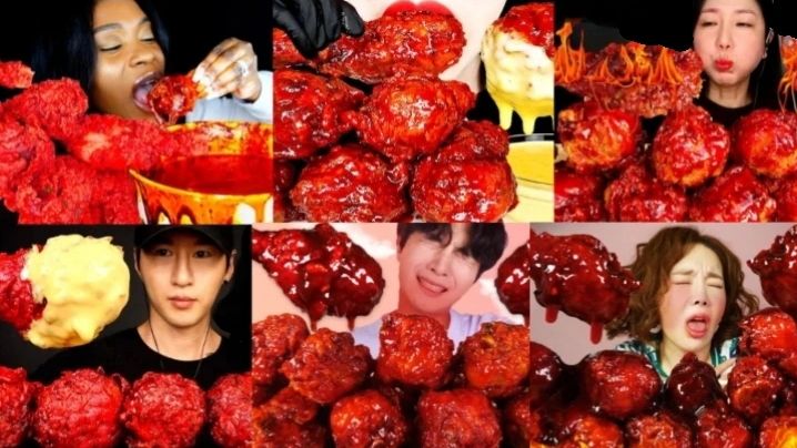 ASMR SPICY FRIED CHICKEN, CHEESEBURGER, SPICY CHICKEN NUGGETS, FIRED CHICKEN & SPAGHETTI NOODLES🤤