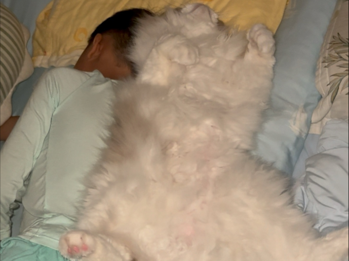 Three years ago, the cat accompanied the baby to sleep. Three years later, the baby can’t live witho