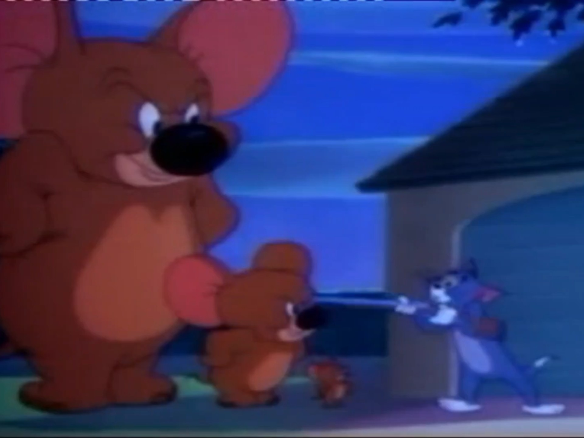Jerry takes the kids to find Tom for a swordplay duel.