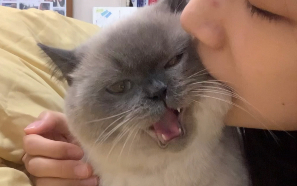 When a kitten hears you feeding another cat, the cat: Hum! This cat is angry