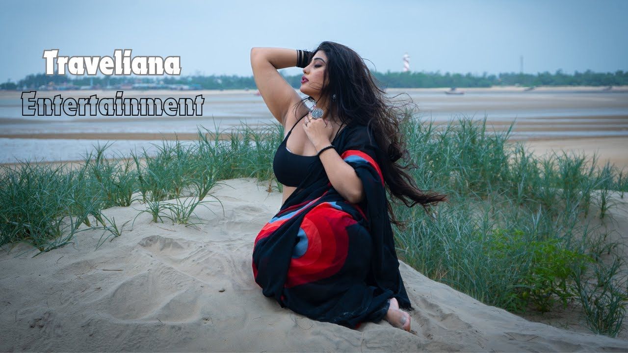 Ultra Low Waist Saree Draping Style With Black Chiffon Saree paired with Black B new Indian Village