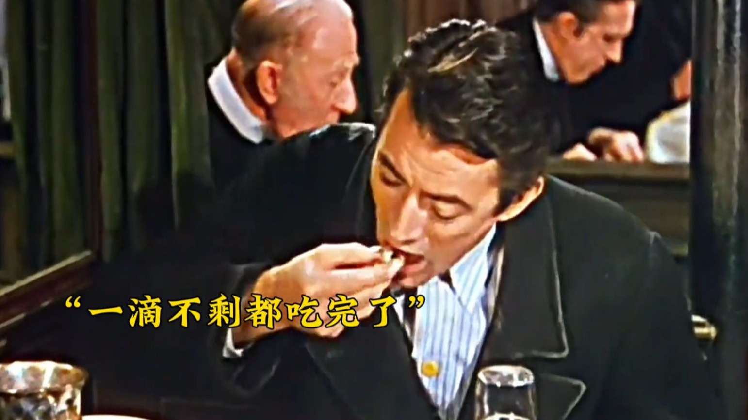 The man, dressed in a simple suit, ordered a premium fried steak, some ham and eggs, and asked for a