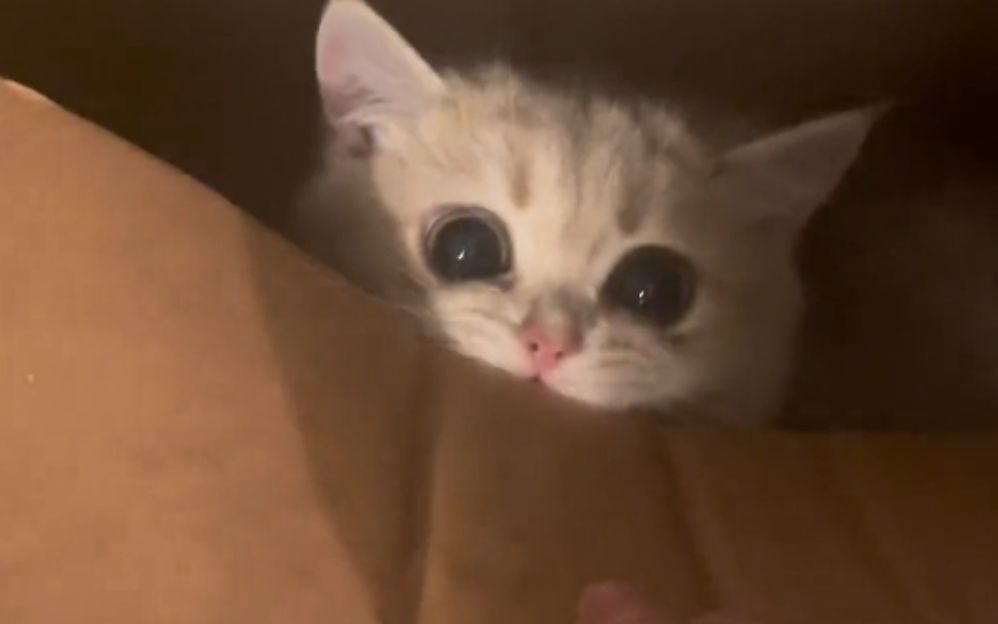 The first time for a one-month-old kitten eats meat!