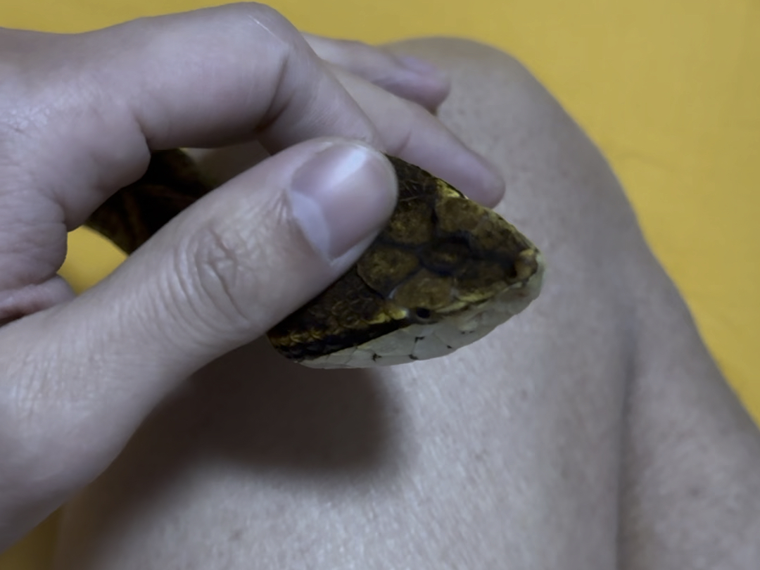 Pinch the head of a 2-year-old cute hognose snakes!