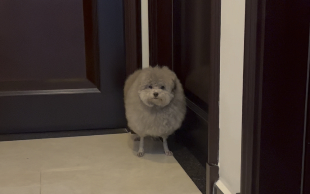 The puppy was so nervous when it was getting its hair trimmed for the first time~ His little tongue