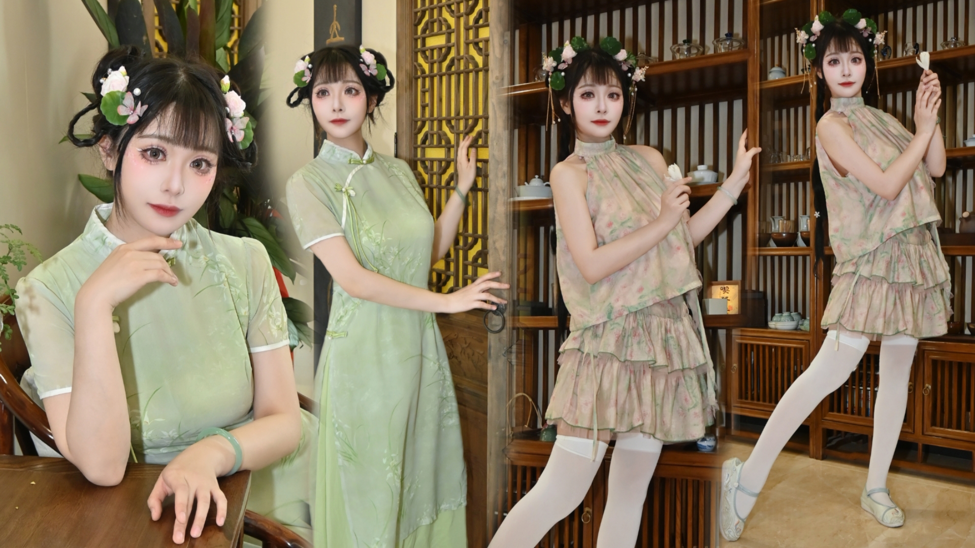 -【Qingtai Miss】Cheongsam white silk sexy dance 29