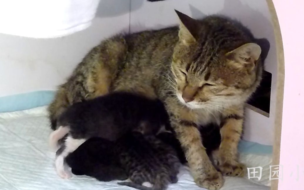 [Animals]Four 1-month old kittens eating the meats for the 1st time
