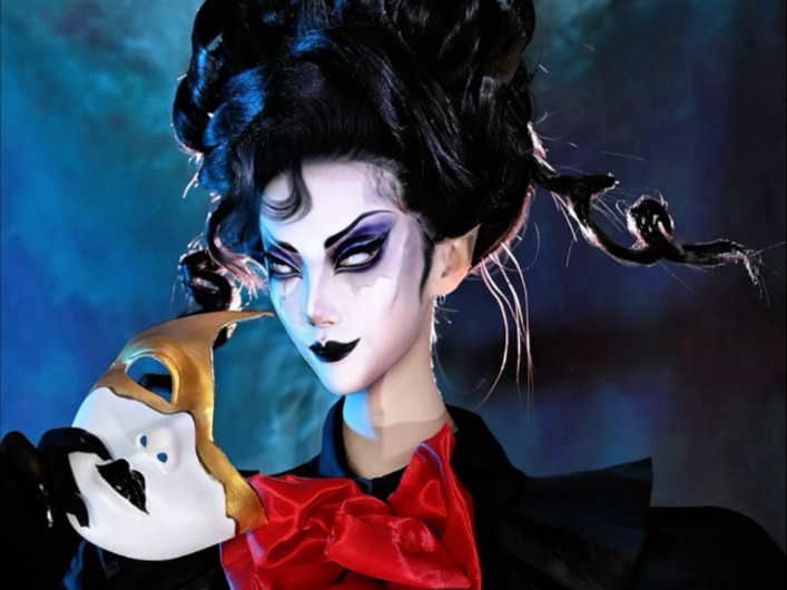 Black Death Mou cosplay makeup display