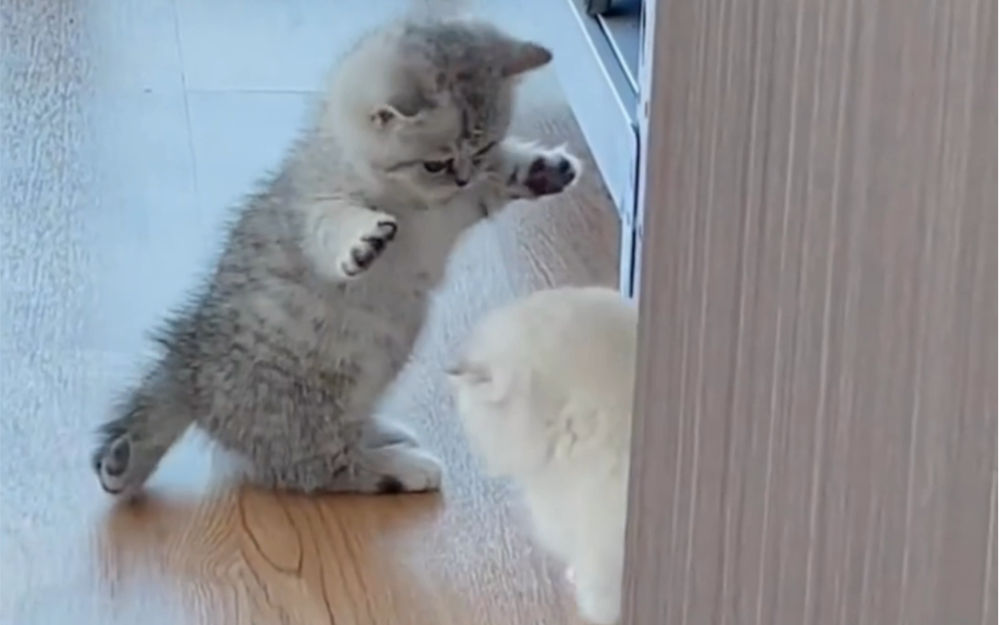 The kitten saw the chick running into the nest and consciously brought warmth to it