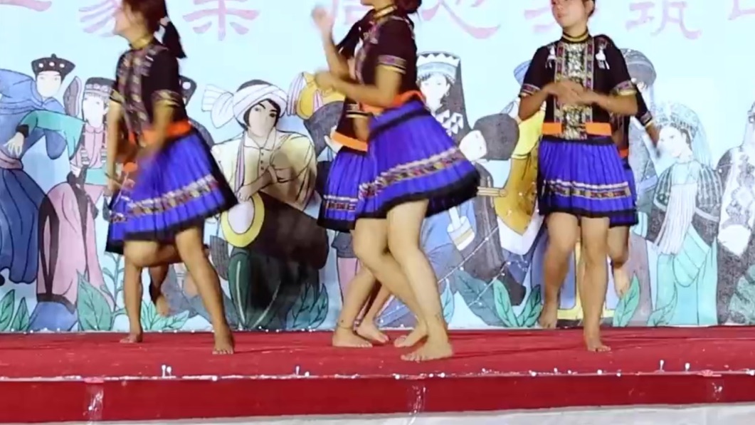Red and white skirt, bare feet dance, star and moon fall