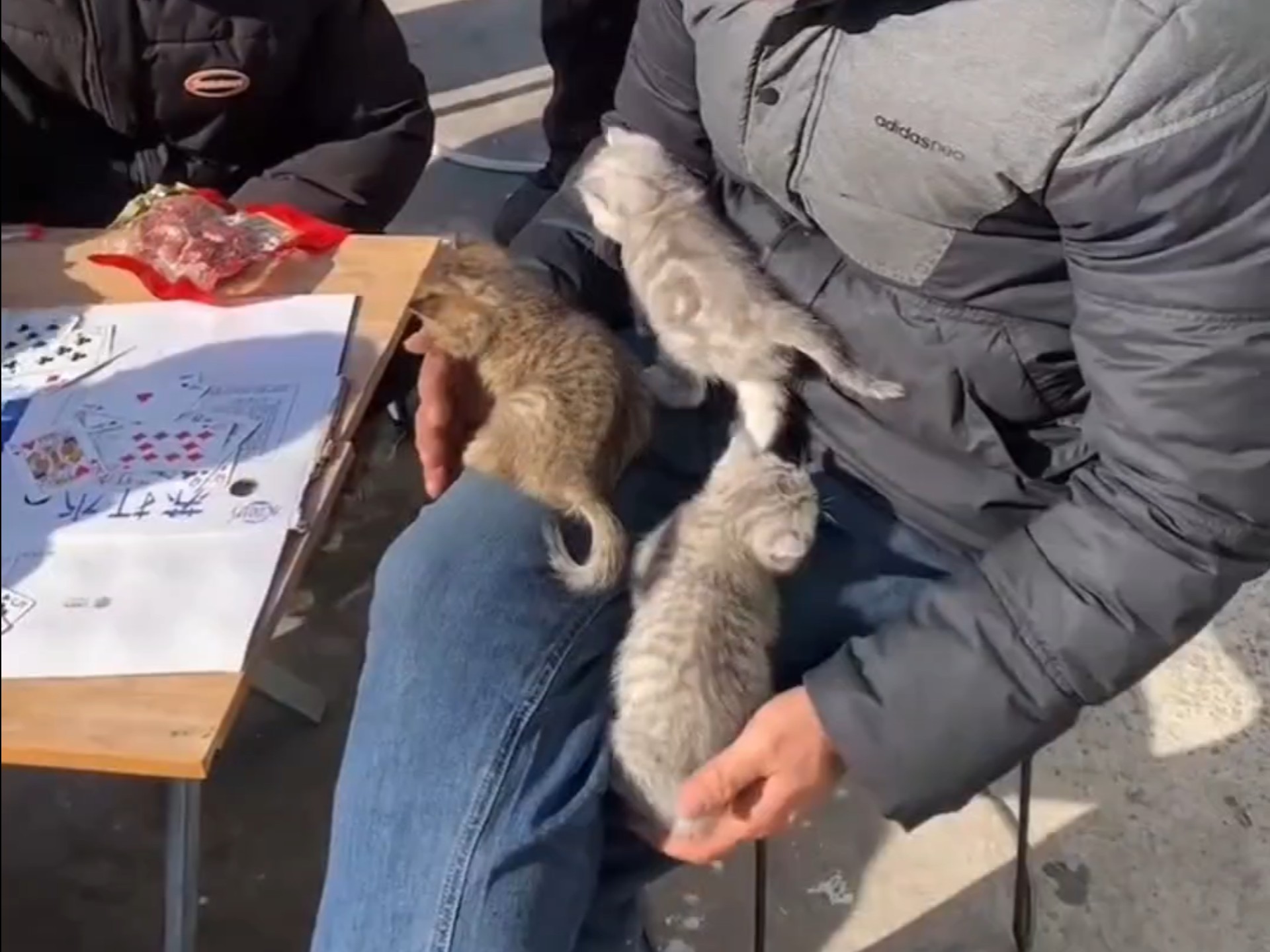 The kitten saw the chick running into the nest and consciously brought warmth to it