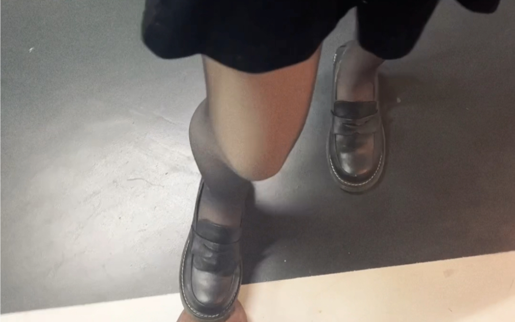 Screen-opening instant crush! Sheer skirt + glossy sheen + red-soled heels—this sexy senior student