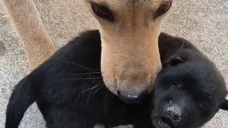 Two dogs in an awkward position