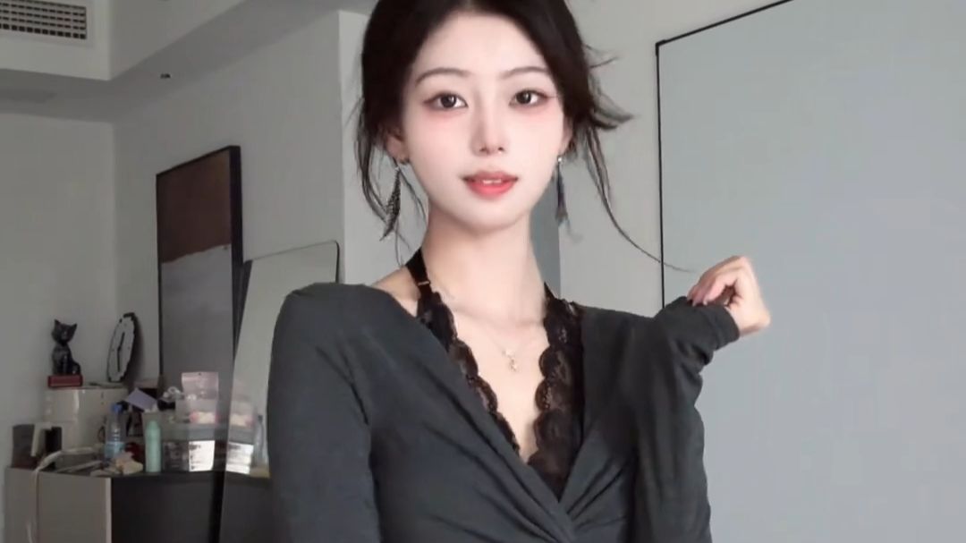 Korean BJ Han Lu — Hot Dance in Black Lace Lingerie Meow (6)