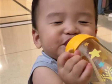 The curious baby is not focused on feeding, eating and stopping, and then wants to take a milk bath!
