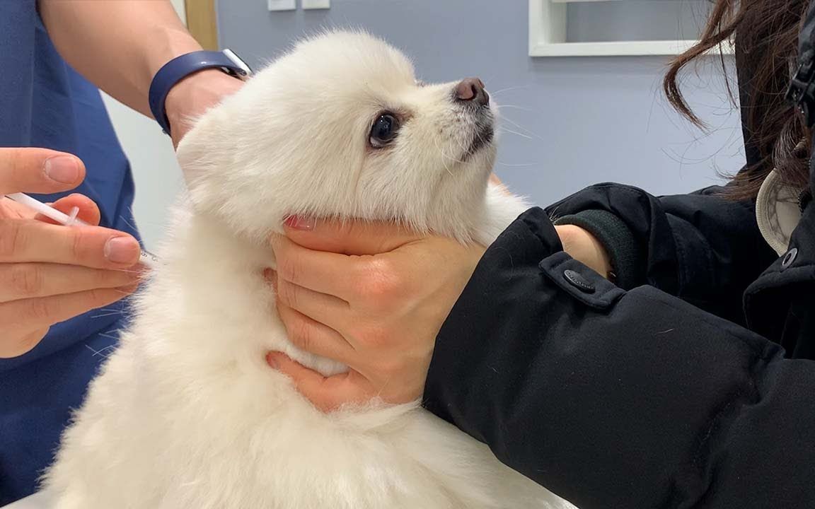 The Pomeranian dog eats sausage rice cake and pork rice cake online. It’s so delicious to chew!