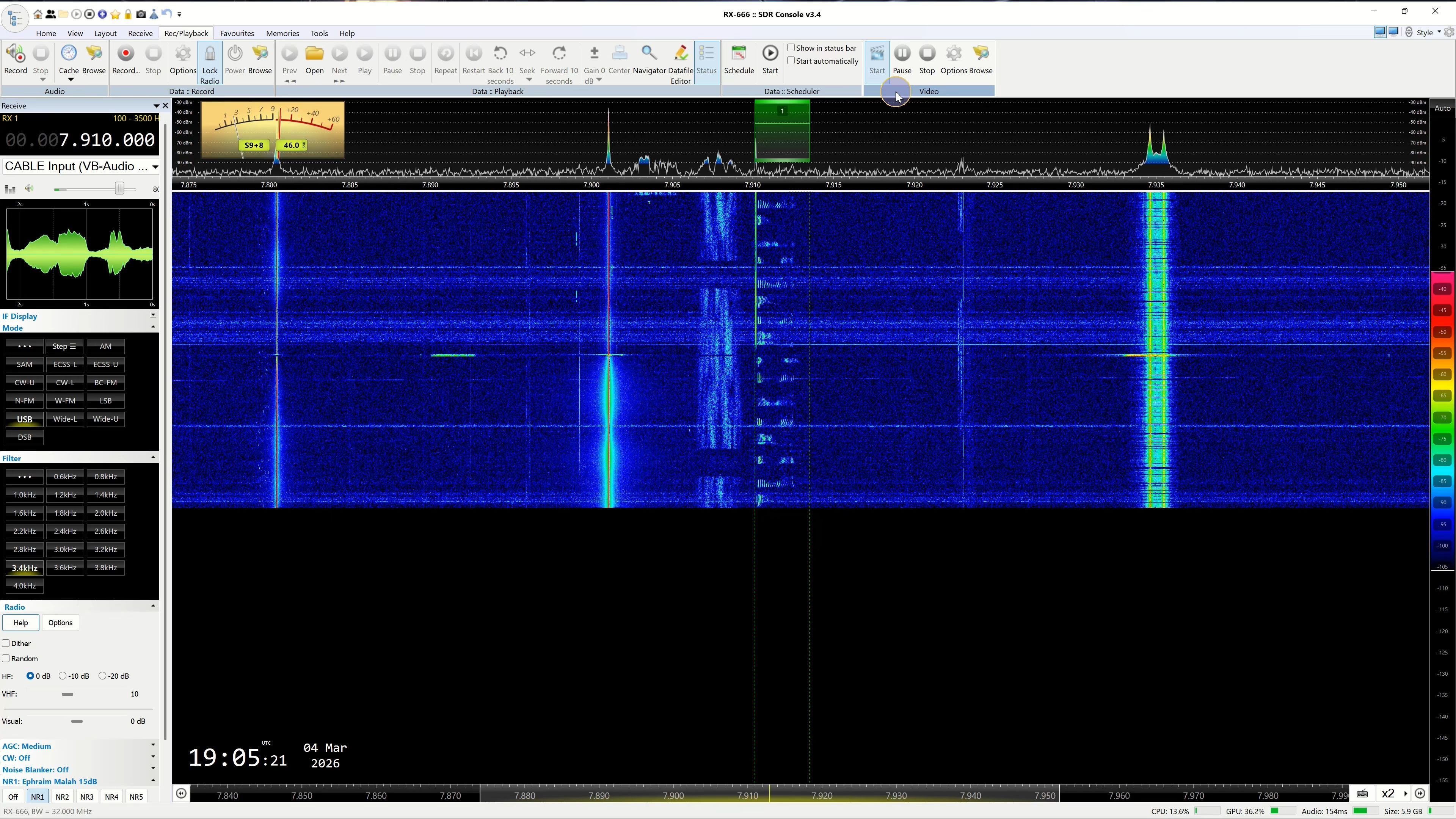 7500 Khz -The American Radio Farda broadcast to Iran, and the Iranian jamming transmitter.
