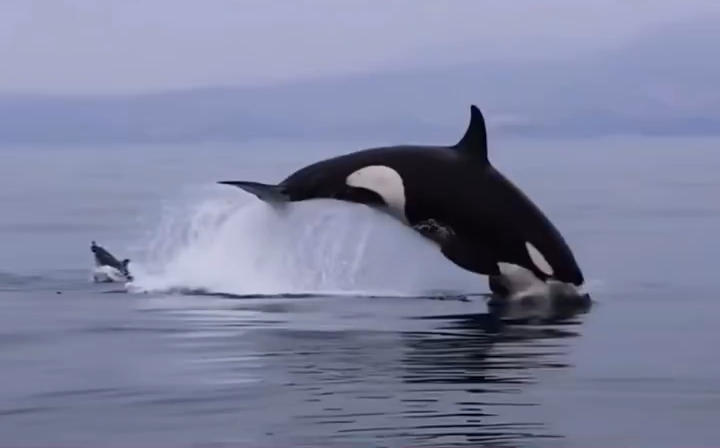 Killer whales having fun with people