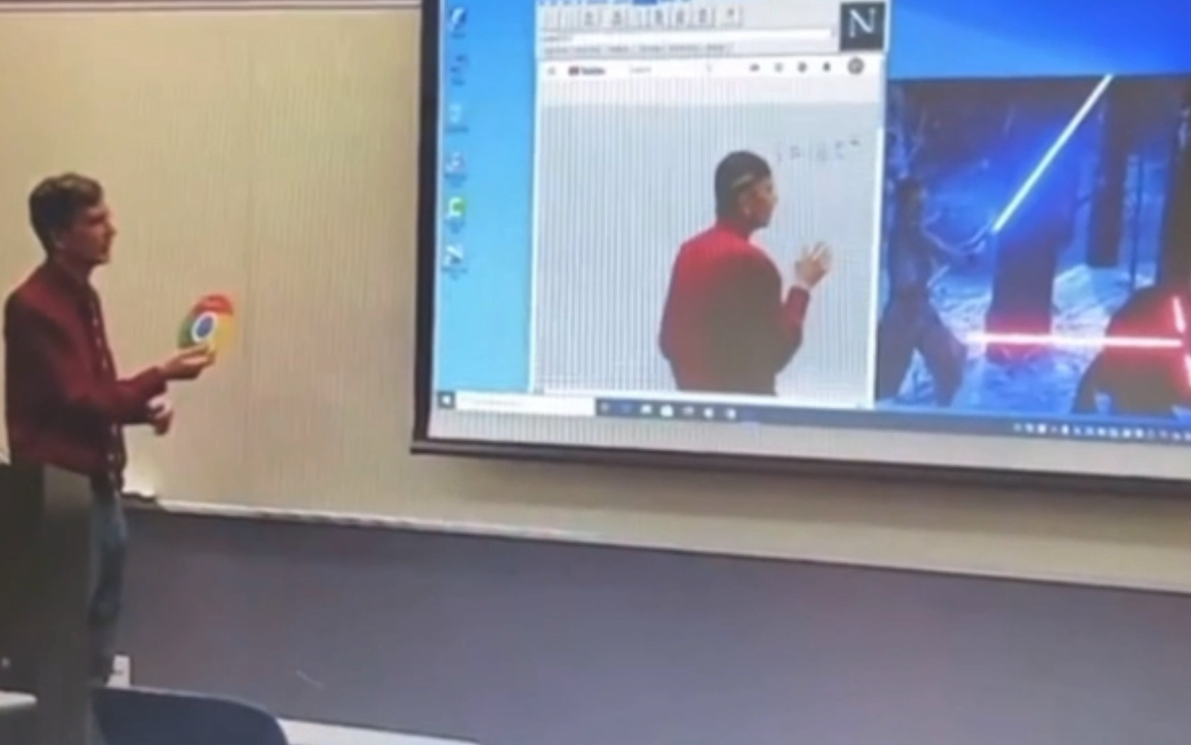 A student teaches the homeroom teacher’s son how to whistle, and it eventually turns into the whole