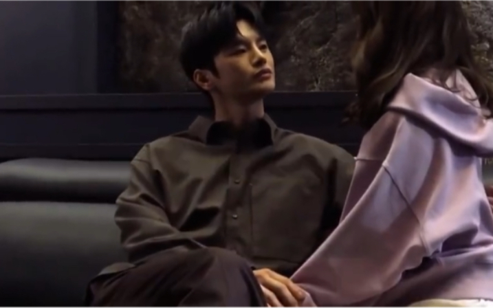 Super-sweet PDA: Riho grabs Jeonghan’s hand and starts pinching her own neck. Jeonghan’s expression