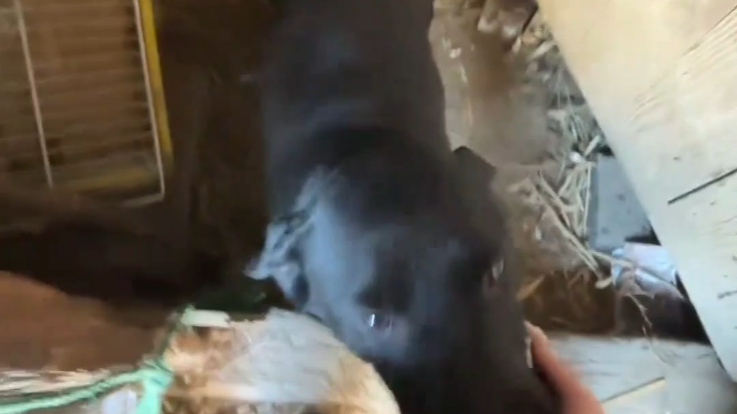 Testing the German Shepherd's reaction while wearing an alligator mask, hahaha!