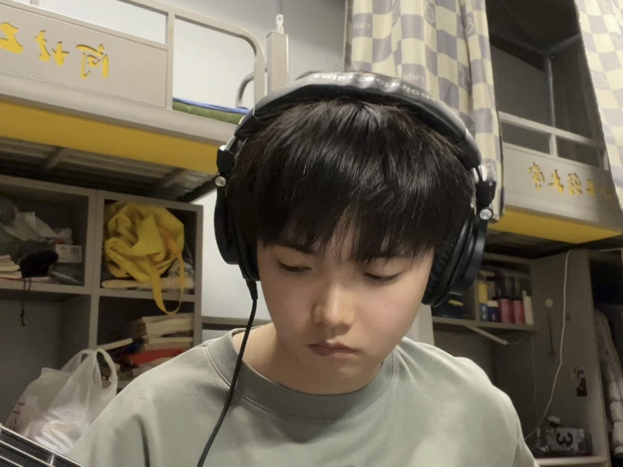 Closed female college students practice stroking in dormitory