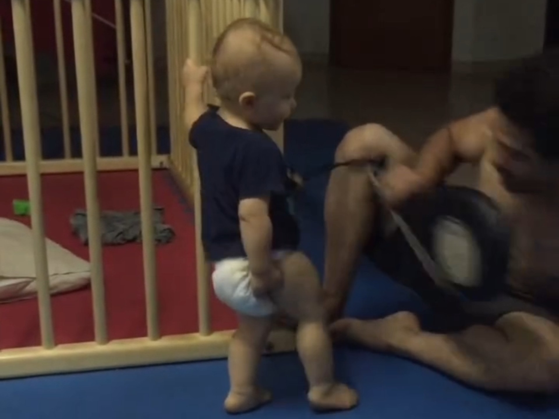 Dad takes care of the baby, there is so much joy, happiness is tangible at this moment...