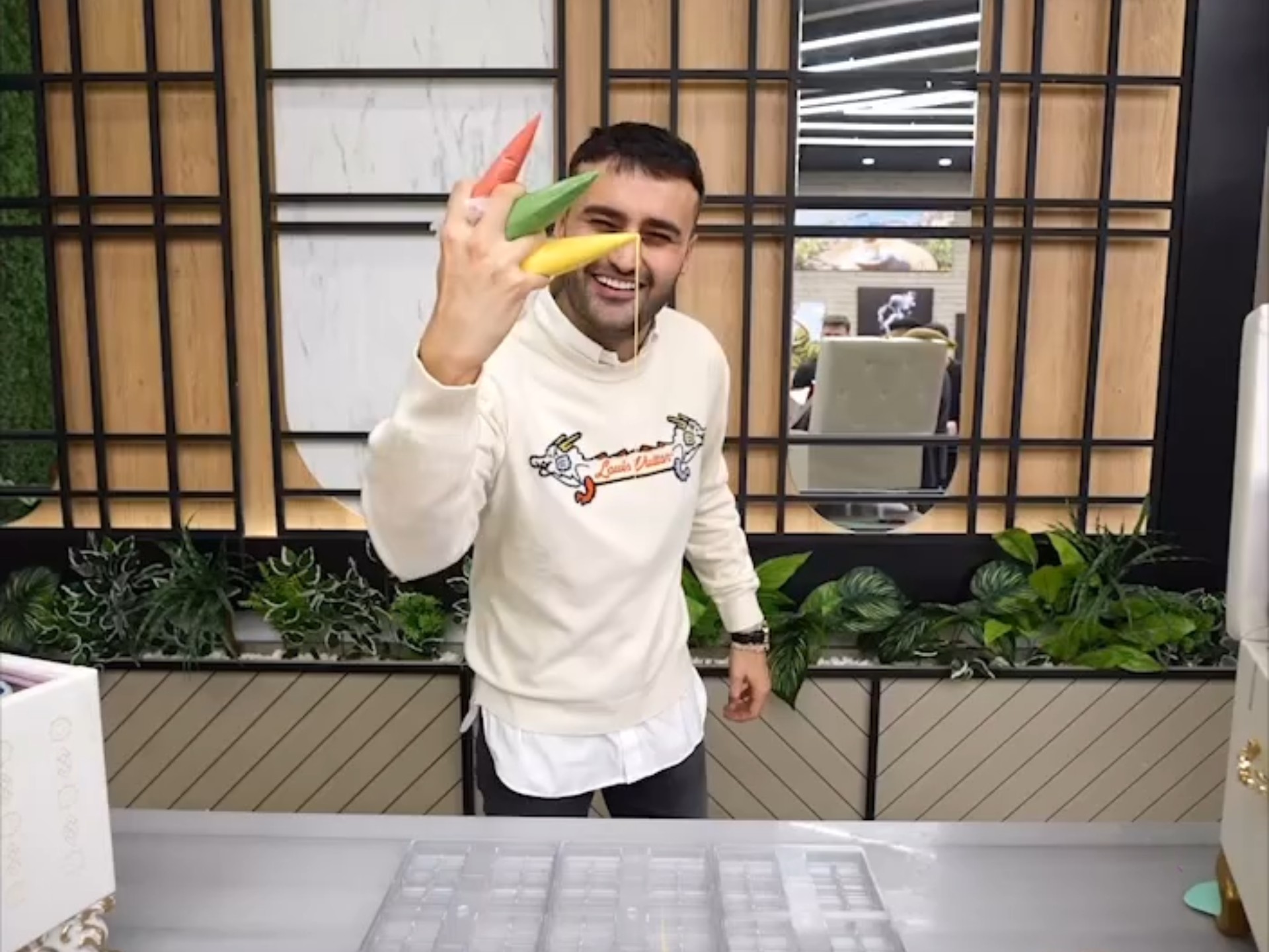 Famous pastry chef Amaury Guichon's latest creation: a giant chocolate strawberry perfect for Valent