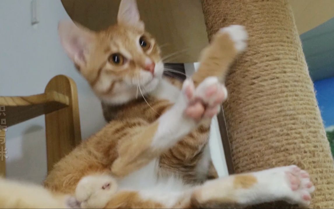 The orange cat is really scared this time