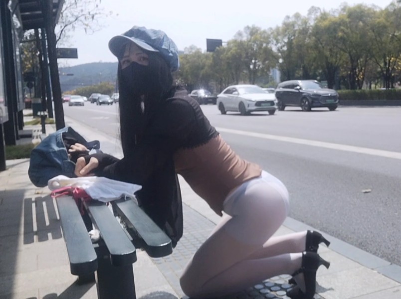 Sweater-wearing girl takes off her white stockings