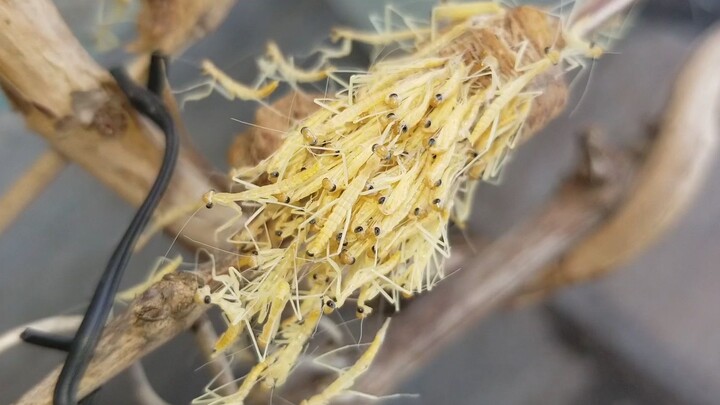 5 Telur Belalang Menetaskan Ratusan Belalang Kecil Di Pohon Anggur