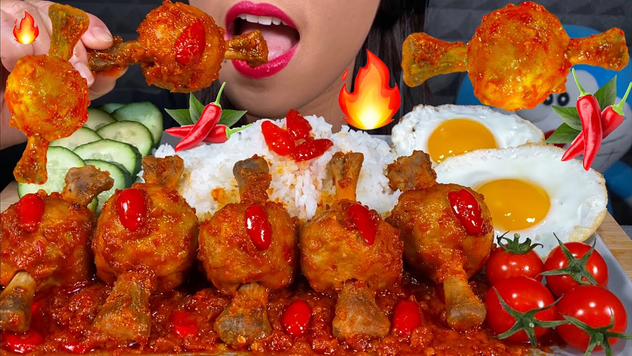 MAKAN AYAM & TELUR RICA RICA PEDAS, MIE GORENG *HOT SPICY CHICKEN, NOODLES, RICE Eating Sounds