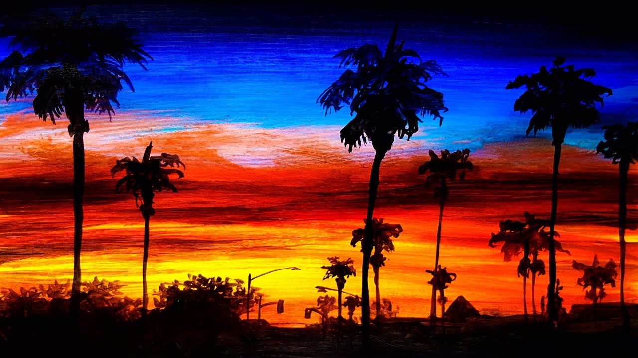 Tutorial melukis sunset dan pohon kelapa untuk pemula
