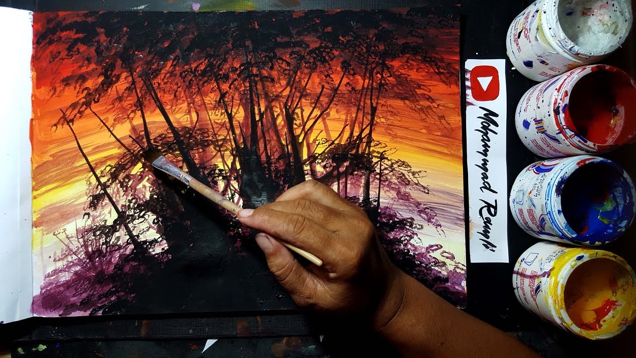 MELUKIS PEMANDANGAN INDONESIA | MENGGUNAKAN CAT AKRILIK