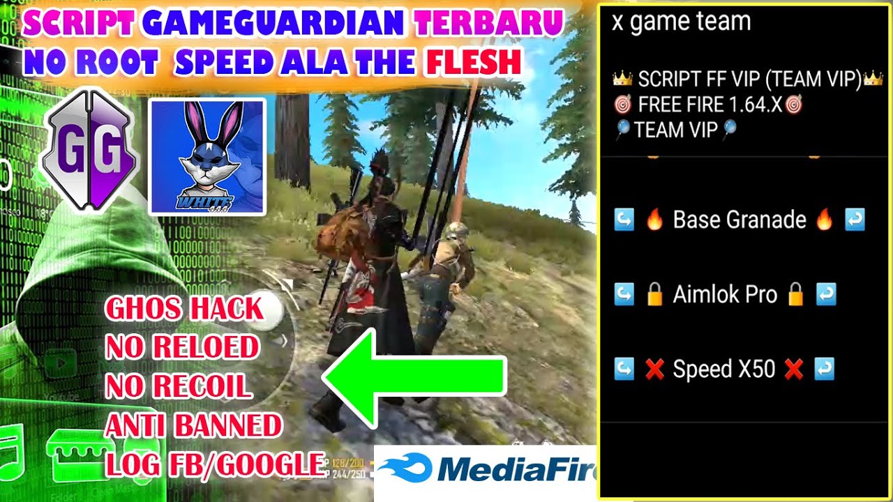 Script Gameguardian FREE FIRE Plus Mod SMG Anti Force Close Work Log Google fb 100% Work